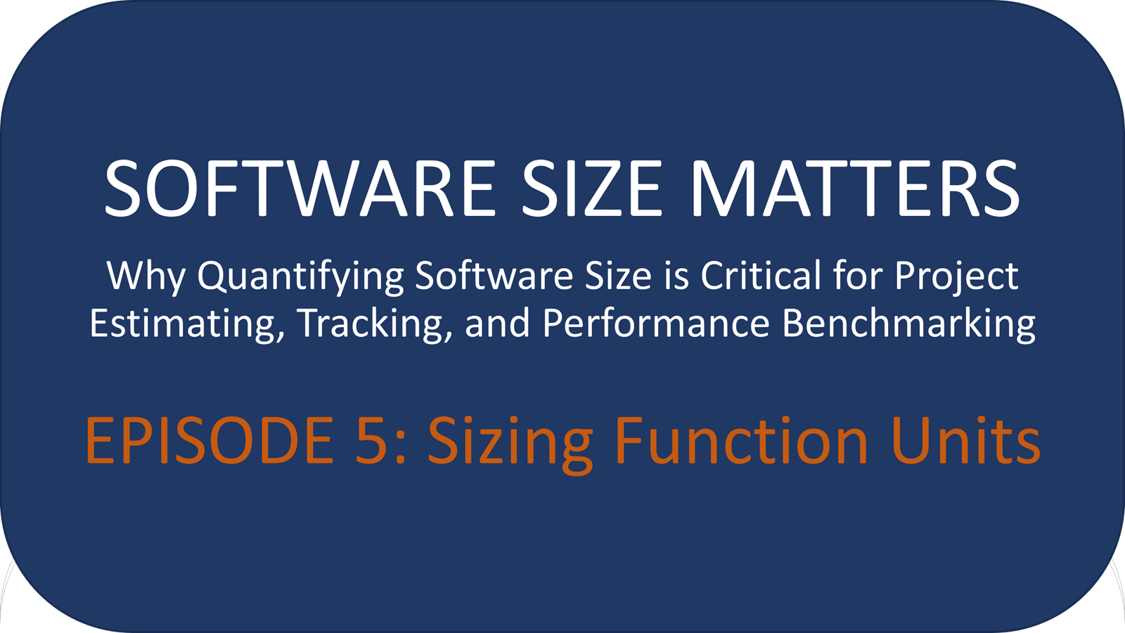 Episode 4 of our video series, Software Size Matters, focuses on choosing a software sizing method that fits the information you have on hand and your software project's lifecycle stage. In previous videos, we discussed why quantifying software size is important, what software size is and is not, and looked at familiar metrics you're probably using now, like requirements, epics, user stories, SLOC and more.